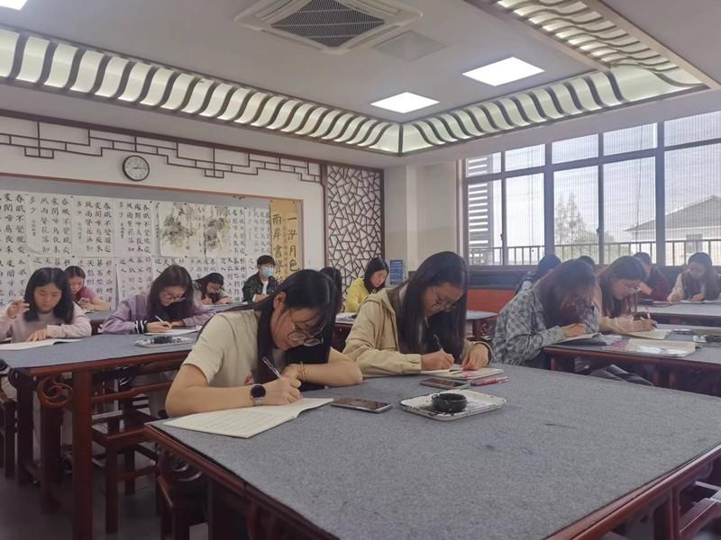 首先,许建刚先就目前学生中存在的书写姿势问题一一跟老师指出。然后,进入本节课的示范环节,指导学员在《永字本》上完成笔画和相关字词书写,强调了短竖的写法。接着,许建刚对学员们的书写进行指导,指导完成“化、优、休、地”等字词,提醒学员们在书写单人旁字时,需要做到注意短竖和撇的位置,单人旁和右边半部分的字要结构合理匀称。学员们在观摩许建刚书写后,自行练习,反复练习许建刚老师强调的书写要点,许建刚在巡视老师们书写的同时热心回答并指导老师们的疑惑,亲手示范,对老师们的进步给予鼓励与肯定,给老师们增加了信心。