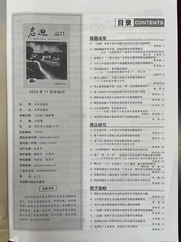 祝贺姜骏怡老师的论文《任务型写作:小学语文写作教学的精准扶贫》在省级刊物发表。