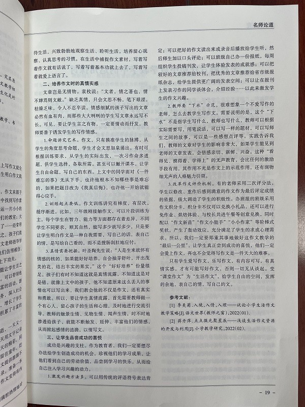 老师的论文《也谈小学语文作文生活化的教学实践》在省级刊物发表。