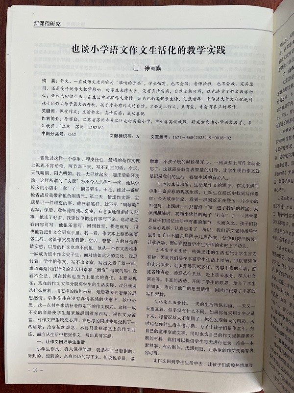 祝贺徐丽勤老师的论文《也谈小学语文作文生活化的教学实践》在省级刊物发表