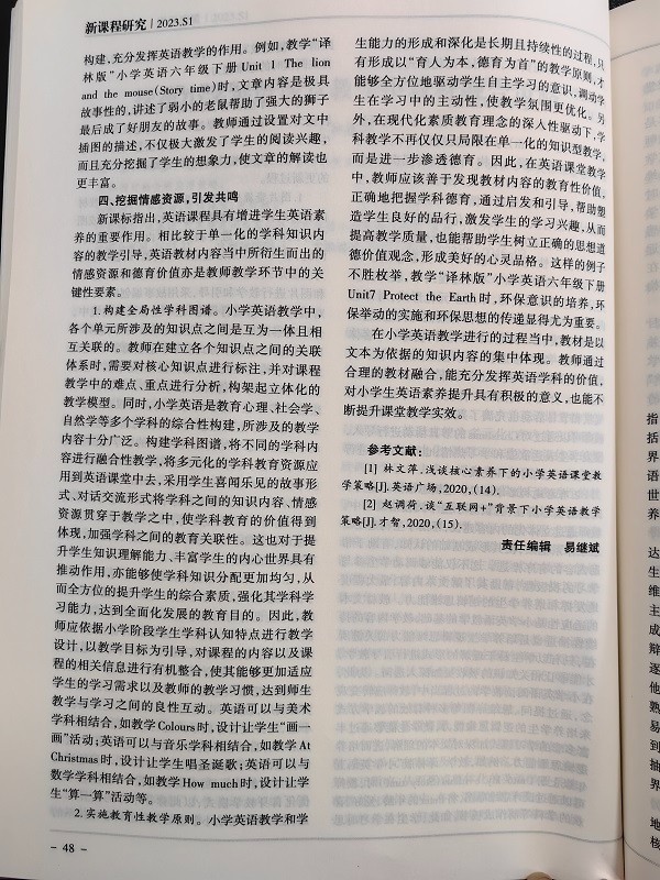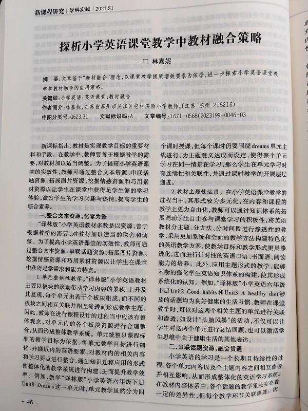 祝贺林嘉妮老师的论文《探析小学英语课堂教学中教材融合策略》在省级刊物发表