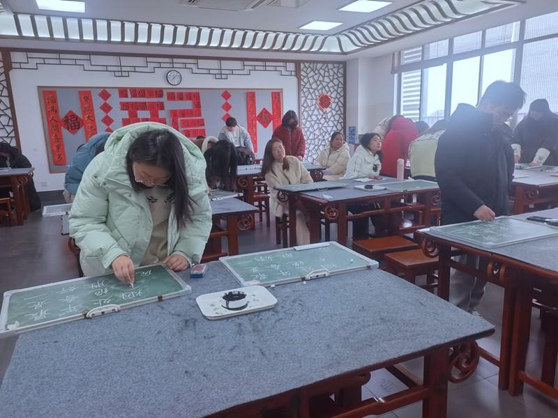 2月26日下午,屯村实小组织全体青年教师在学校“鲁公堂”进行粉笔字培训。培训由学校书法教师许建刚(中书协会员)进行授课。