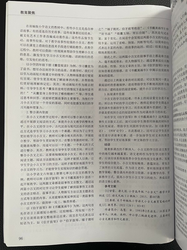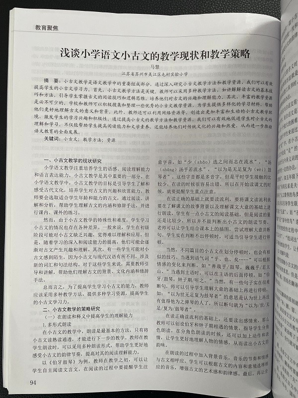 祝贺马慧老师的论文《浅谈小学语文小古文的教学现状和教学策略》在省级刊物发表