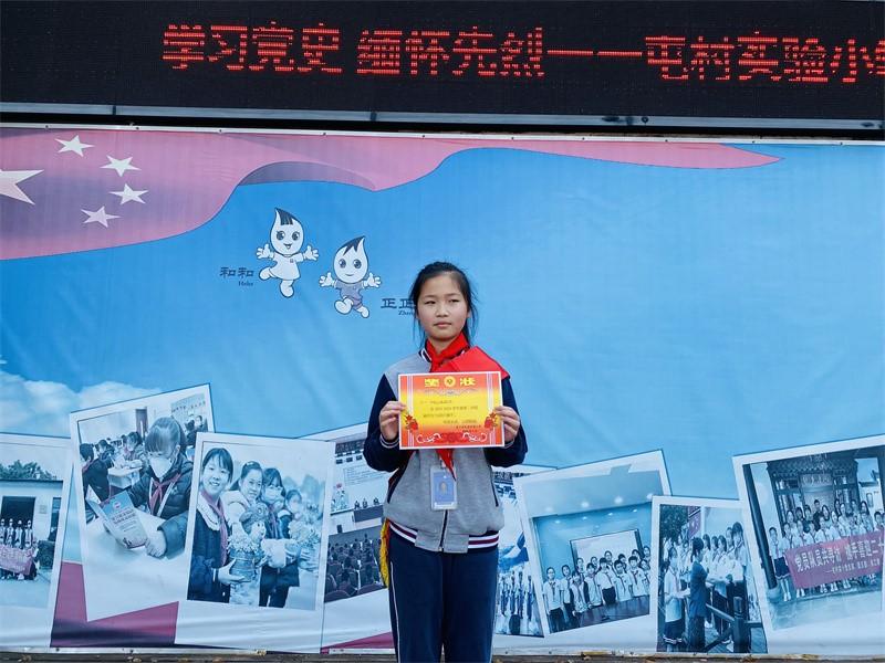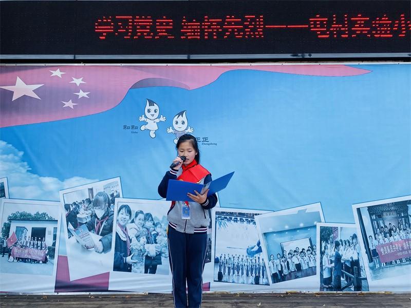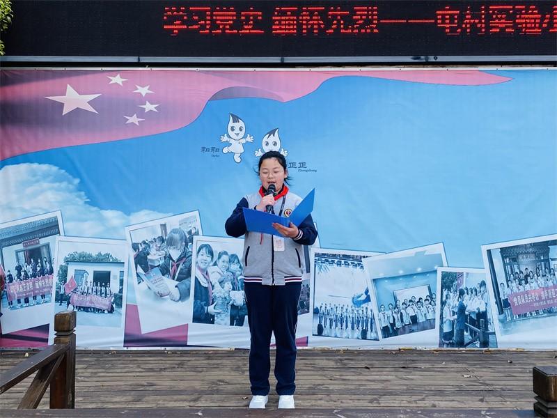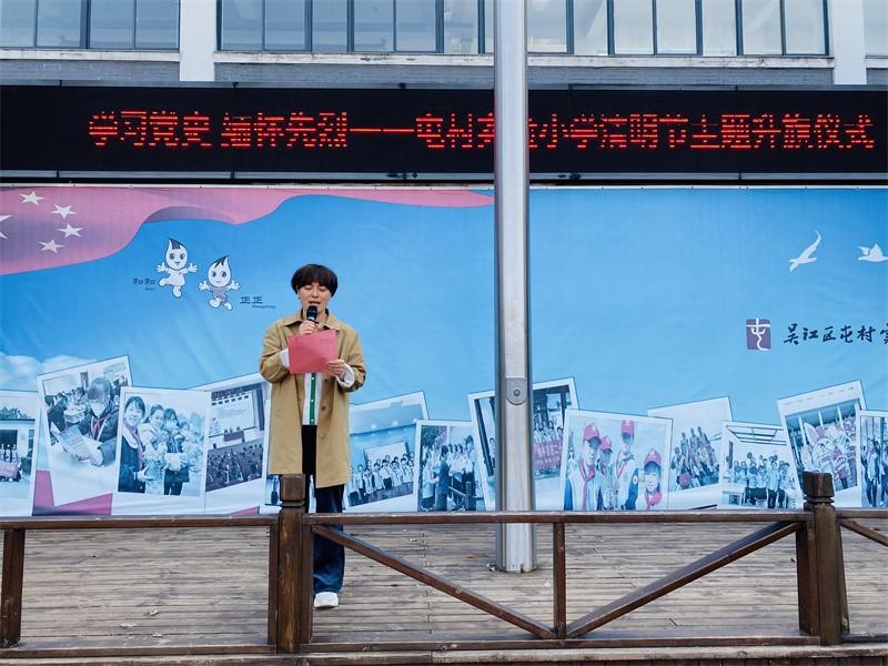 伴随着雄壮的国歌,全体师生庄严肃立。五(6)中队的光荣升旗手沈婧涵号召队员在面对如今和谐的社会、美好的未来,更应具有爱国之情,更应树立报国之心,肩负起历史的责任和使命,发奋学习!蒋秀琴副校长激励队员们以社会主义建设者和接班人的使命担当,为全面建设社会主义现代化强国而努力奋斗,让中华民族伟大复兴在我们的奋斗中梦想成真!