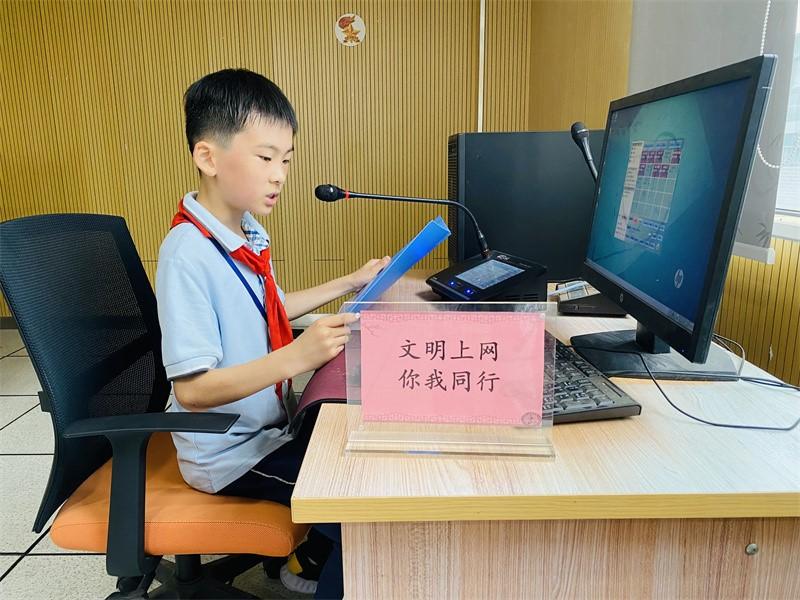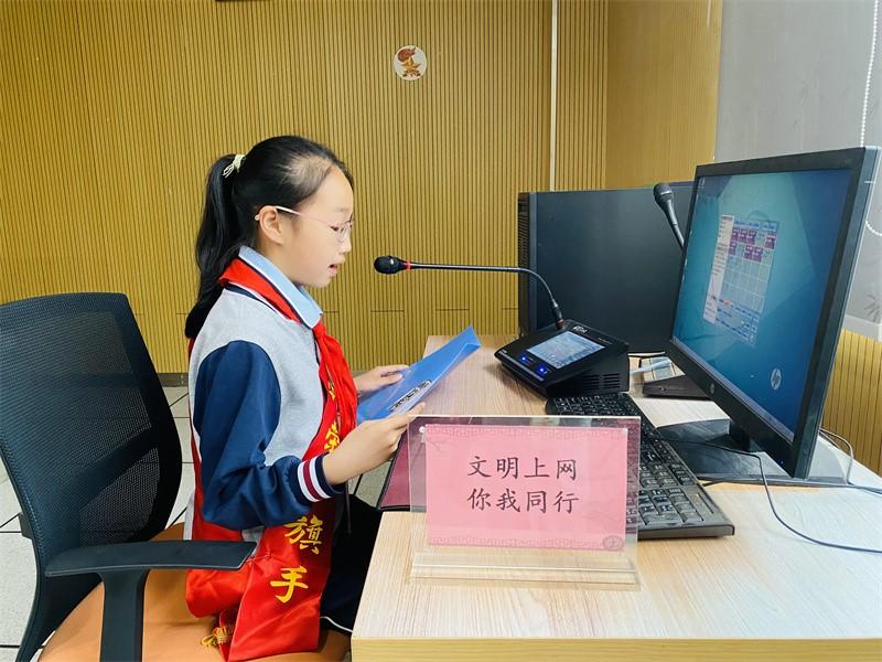 伴随着雄壮的国歌,全体师生庄严肃立。四(3)中队的光荣升旗手顾雨涵介绍了网络不文明行为的危害和严重后果:网络不是法外之地,网络不文明行为不仅会影响大家身心健康,而且也将承担法律责任。蒋秀琴副校长在总结发言中号召队员们坚持绿色上网、文明上网,培养良好的网络使用习惯。