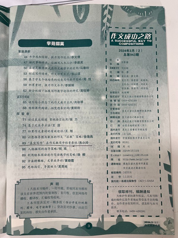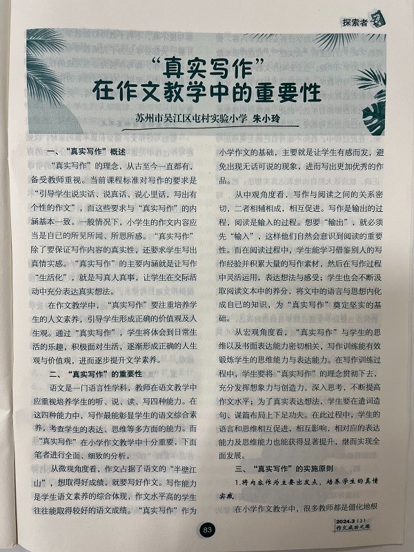 祝贺朱小玲老师的论文《“真实写作”在作文教学中的重要性》在省级刊物发表