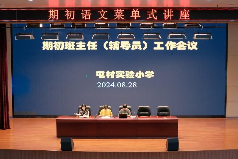 8月28日上午,屯村实验小学在报告厅召开了期初班主任会议。会议由德育处主任姜骏怡主持,副书记顾瑾和全体正副班主任共同参加会议。