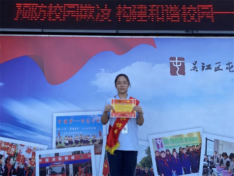 伴随着雄壮的国歌,五星红旗冉冉升起,全体师生肃立注目。六(2)中队的光荣升旗手丁晨菲进行了以《杜绝校园欺凌从我做起》为主题的演讲,她希望同学之间互爱互助,团结一致,从自己做起,爱惜自己,爱护同学,远离校园欺凌,快乐学习成长。随后大队辅导员林老师为她颁发了光荣升旗手奖状。