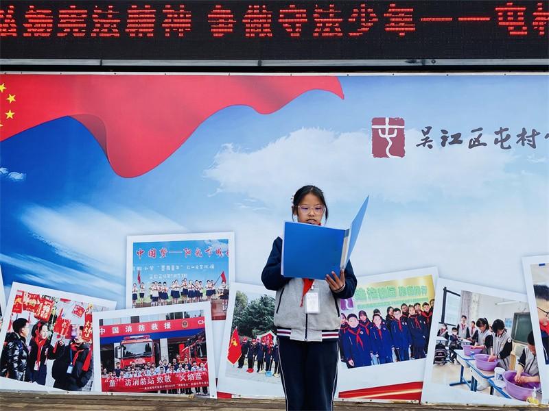 伴随着雄壮的国歌,全体师生庄严肃立。五(6)中队的光荣升旗手束周允进行了主题演讲,他告诉全体同学宪法并不是高高在上的,它与我们的日常生活息息相关,作为新时代少年,我们应该多多学习法律知识,关注法律资讯,加强校园法治文化建设,培养法治意识、提升法治素养。费红主任在总结发言中号召全体同学尊崇宪法,学习宪法,遵守宪法,维护宪法,运用宪法,让宪法成为我们共同的信仰。