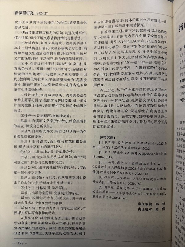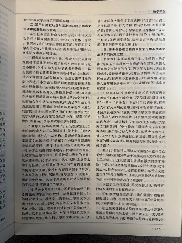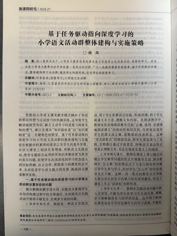 祝贺杨凤老师的论文《基于任务驱动指向深度学习的小学语文活动群整体建构与实施策略》在省级刊物发表