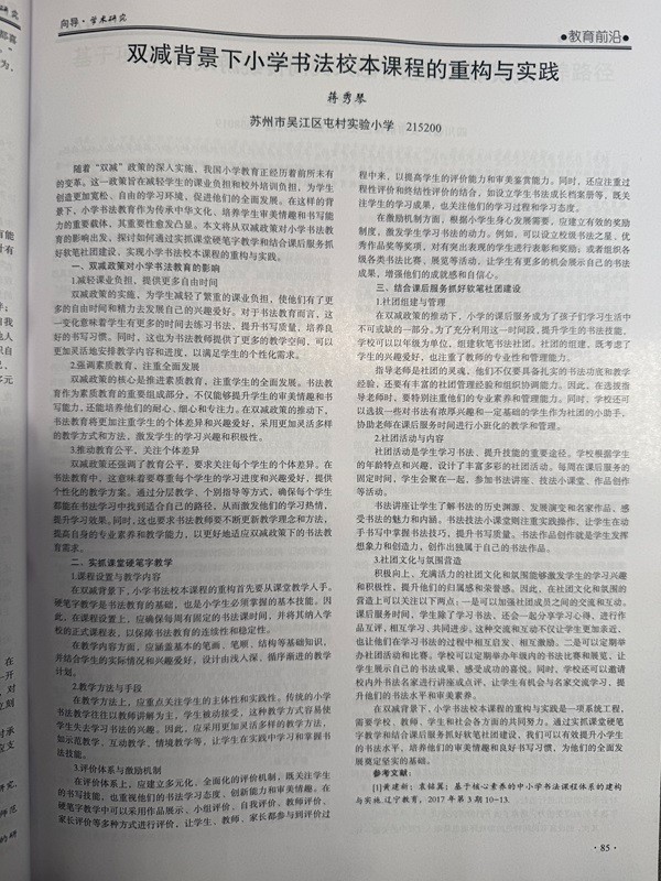祝贺蒋秀琴老师的论文《双减背景下小学书法校本课程的重构与实践》在省级刊物发表