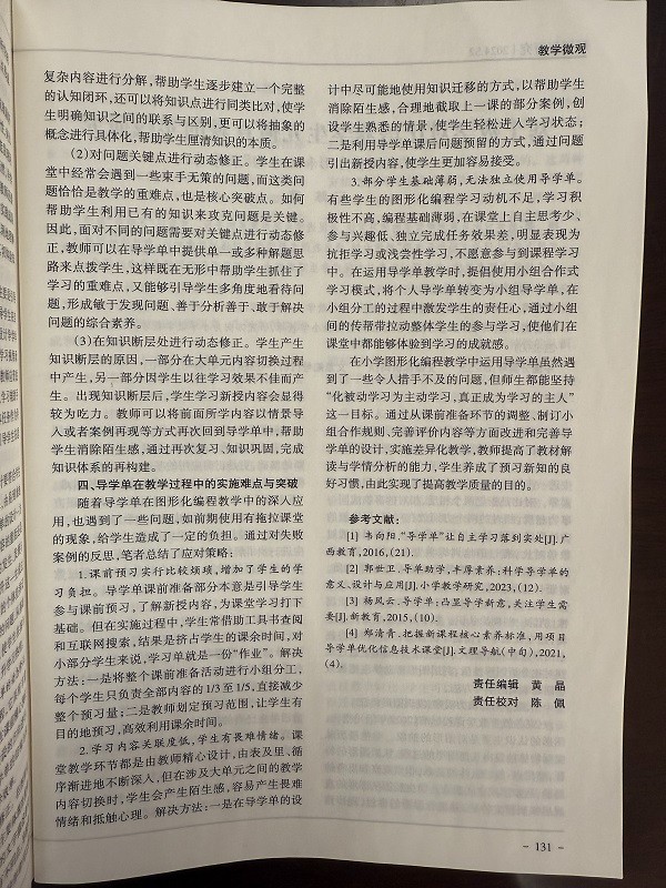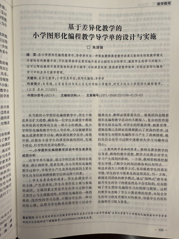 祝贺朱淳强老师的论文《基于差异化教学的小学图形化编程教学导学单的设计与实施》在省级刊物发表
