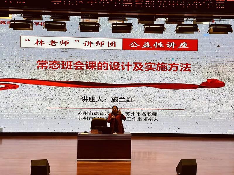 随后,大家聆听了专家讲座。全国模范教师、苏州市须海萍班主任名师工作室领衔人须海萍老师,为班主任们带来了《巧借金针度于人——关于特殊学生行为分析及干预策略思考》的精彩讲座。讲座中,须老师条理清晰,从特殊学生的类型、成因,再到对特殊学生行为的干预策略,层层深入,徐徐道来,毫无保留地向班主任们分享了丰富且宝贵的班主任管理经验,为班主任们照亮了管理特殊学生的前行道路。区教研室教研员肖文明老师从带班育人故事、带班育人方略、主题班会等方面对班主任基本功竞赛进行了指导。他强调了班主任要用活动育人,班会课要有明确的问题意识,同时要以课程领导,要有整合班级教育资源的意识和能力。区中小学家庭教育指导与服务中心负责人施兰红老师进行了微讲座《常态班会课的设计及实施方法》,对即将参与班主任基本功竞赛的老师进行了叮嘱。