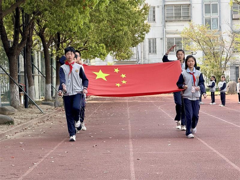 仪式在庄严的出旗环节中拉开帷幕。随着五星红旗冉冉升起,全体师生齐唱国歌,少先队员们敬队礼,现场氛围庄重而热烈。