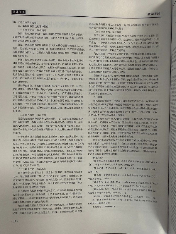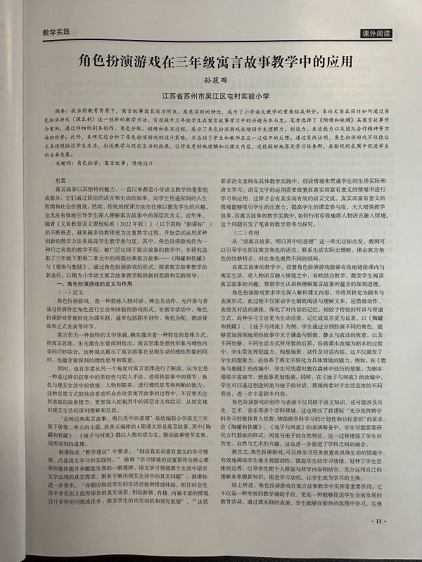 祝贺孙筱雨老师的论文《角色扮演游戏在三年级寓言故事教学中的应用》在省级刊物发表