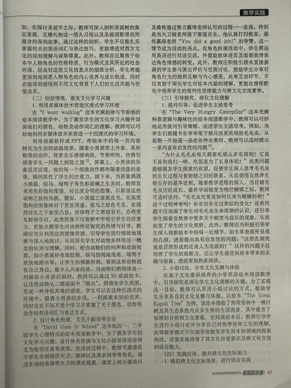 基于文化意识培养的小学英语绘本阅读教学的实践研究