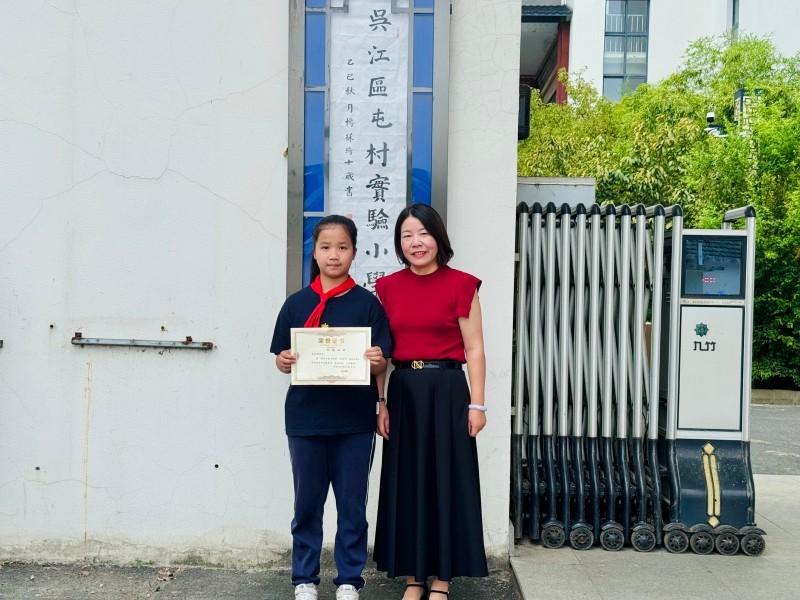 仪式上还对本学期“墨海泛舟”英语作业展示评比中的优胜班级,以及在“我为学校写校名”活动中作品被收藏展示的杨苏琦同学进行了表彰。