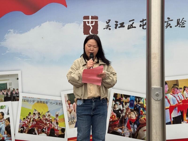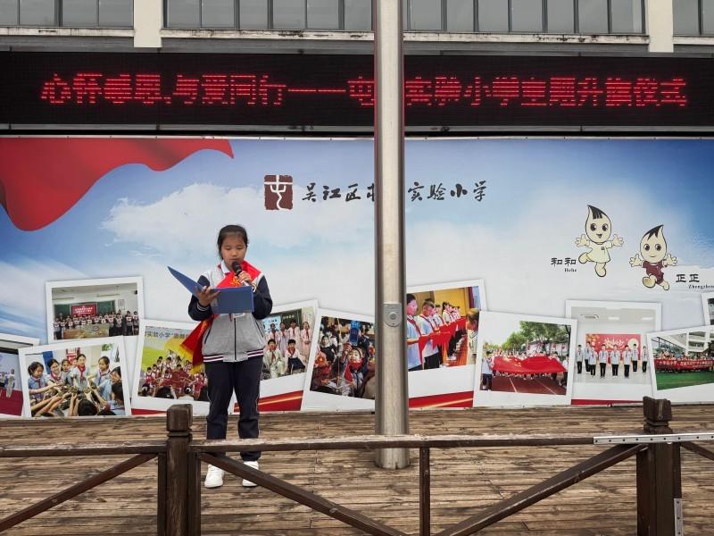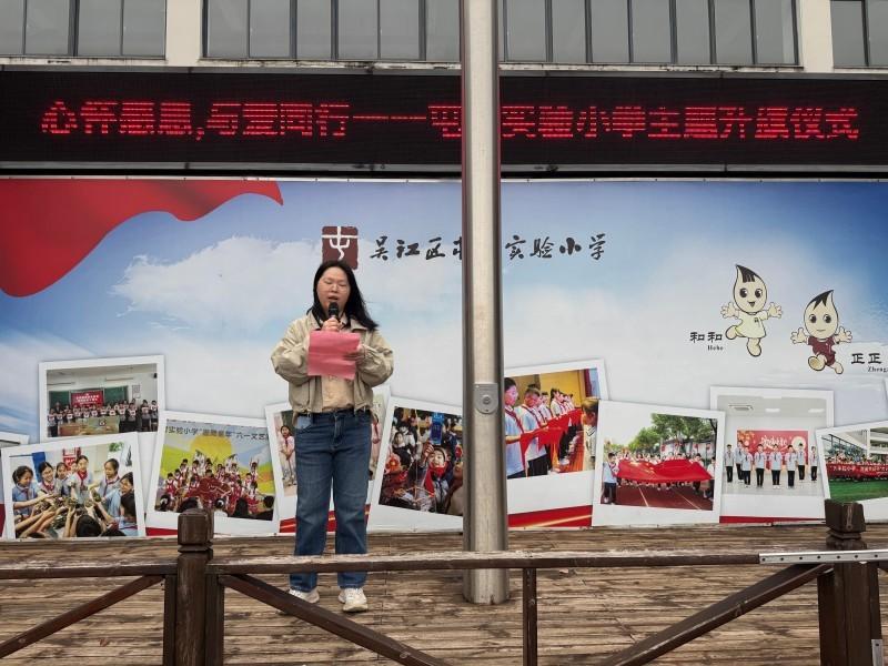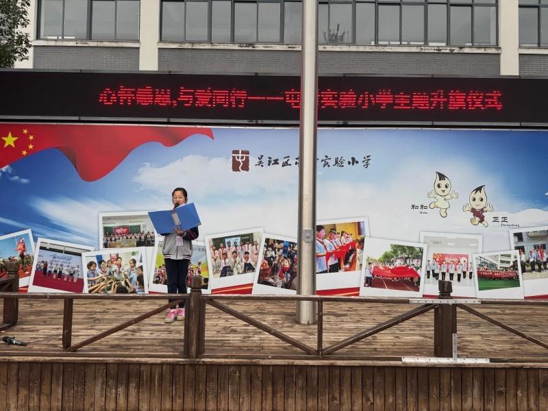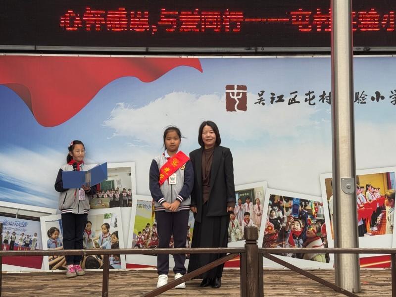 在庄严的国歌声中,五星红旗冉冉升起,全体师生肃立行礼。本次担任光荣升旗手的是六(1)班杨苏琦同学,她平日里尊敬师长、友爱同学,用实际行动践行感恩精神,是同学们学习的榜样。徐校长为她佩戴了“光荣升旗手”绶带。