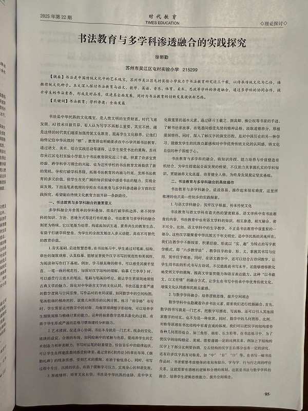 祝贺徐丽勤老师的论文《书法教育与多学科渗透融合的实践探究》在省级刊物发表