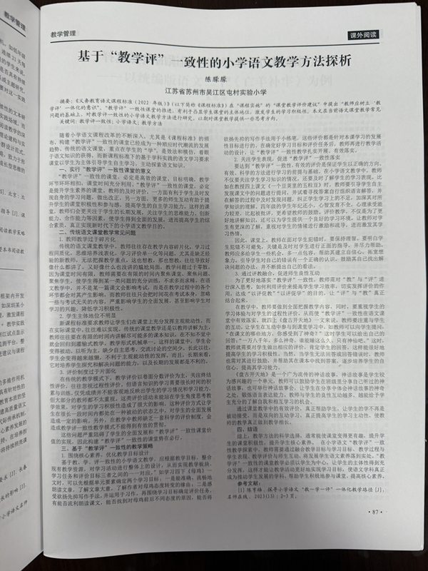 祝贺陈朦朦老师的论文《基于“教学评”一致性的小学语文教学方法探析》在省级刊物发表